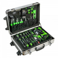 Tippkvaliteediga tööriistakomplekt, mis sisaldab padruneid, kruvikeerajaid, näpitsaid, L-kuuskante ja L-Torxe, leht-silmusvõtmeid, kruvikeerajaid jne. Padrunid 6-kant profiiliga ja matt pinnatöötlus.