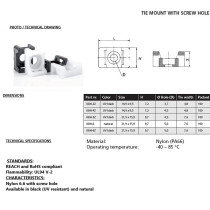 Ankru mõõdud 27,7 x 27,7 x 5,3 mm Sobivad juhtmevitsale kuni 5,3 mm Kruviaugu Ø 5,7 mm Valmistatud polüamiidist (nailon PA6.6) Kasutustemperatuur -40°C kuni +85°C Süttivus UL 94 V-2 Vastab REACH ja RoHS nõuetele Pakis 100 tk