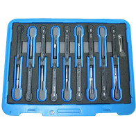 7-osaline komplekt Deutsch elektripistikute lahtiühendamiseks, klemmide ohutuks vabastamiseks ilma sõiduki juhtmestikku ja klemmliistu kahjustamata. Komplekt sisaldab tööriista, millel on kombineeritud kiilude eemaldamise otsik ning lameda otsaga kruvikeeraja ja 6 tööriista, mis katavad juhtmete mõõdud vahemikus 4-20. Sobib Deutsch pistikutele, mida kasutatakse autodes, mootorratastes, raskeveokites, ehitustehnikas, põllumajandustehnikas ja mõnedes päramootorites. Materjal: roostevaba teras, anodeeritud alumiiniumist käepidemed. Vastab REACH ja RoHS nõuetele.