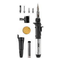 Kiire ja mugav pieso süütega nupu abil. Stabiilse ja ergonoomilise kujuga käepide, mis võimaldab tööriista mugavat ja turvalist käsitsemist ühe käega. Põleti otsa läbimõõt 20 mm, mis võimaldab tõhusalt joota nii pehmeid, kui kõvasid materjale. Leegi intensiivsust saab kohandada vastavalt vajadusele. Gaasiballoonina saab kasutada standardset 190 g ballooni (32-225772). Gaasikulu 95 g/h. Leegi temperatuur max 1200°C.