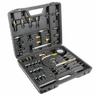 Universaalne diiselmootori kompressiooni mõõtmise komplekt. Sobib veokitele, sõiduautodele ja tehnika diiselmootoritele (külmikud, traktorid, kaatrid jne). Komplektis on mõõtekell ja adapterid, mille abil saab mõõta kompressiooni pihustiavadest ja hõõgküünla avadest. 0-70 bar. Kaasas adapterid küünla- ja pihustiavadele keermetega M8x1, M10x1, M10x1,25, M12x1,25, M18x1,50, M20x1,50, M22x1,50, M24x1,50, M24x2,0. Tugevas plastkohvris.