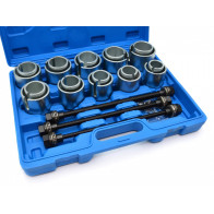 Suurepärane komplekt, mille abil saab rattalaagri (ja rummu) eemaldada ja paigaldada otse sõiduki küljes. Komplektis surveplaadid 55,7-63,3-67,8-70,7-71,9-71,7-72,8-73,4-74,7-77,4-81,4-83,3-88,4 mm, hülsid 76-82-92-101 mm, jõukruvi ja mutter, mis valmistatud eriterasest ja vajadusel keeratavad ka löökmutrikeerajaga (jõukruvi enne kasutamist määrida). Plastkohvris.